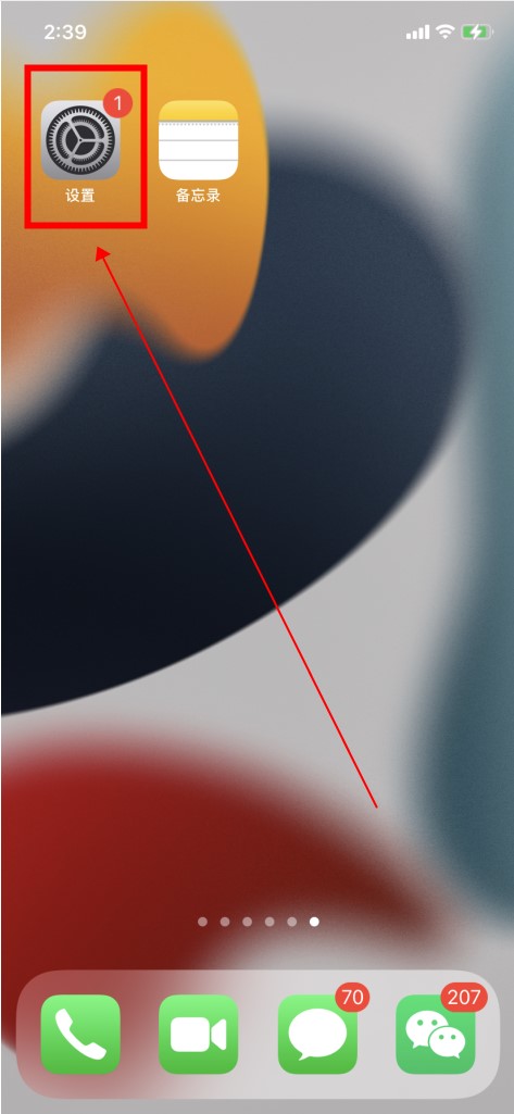 打开iPhone,点击桌面上的“设置”。