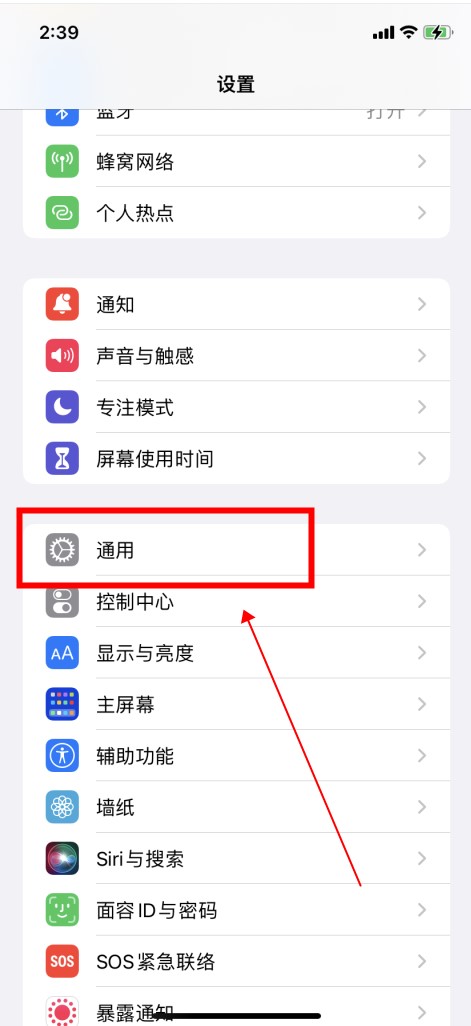 在手机设置中,点击“常规”选项。