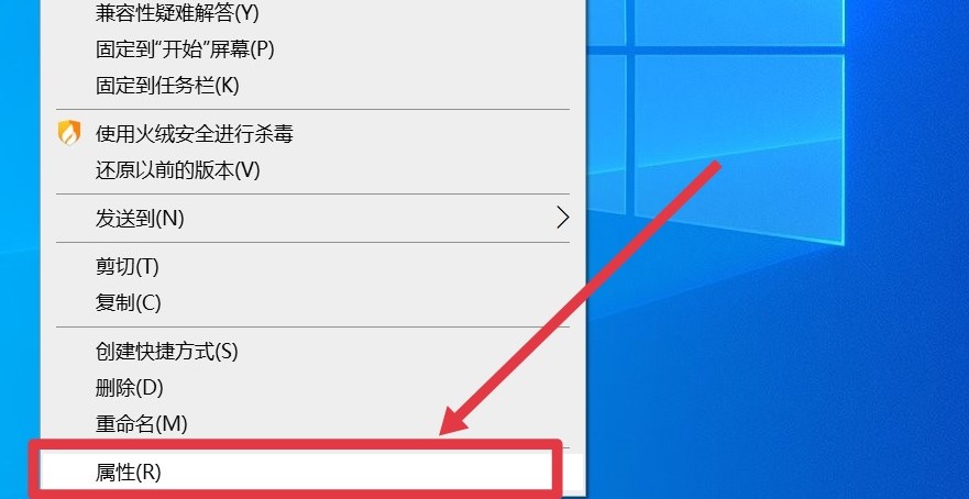 在您要查找的软件上单击鼠标右键,然后单击“属性”选项。