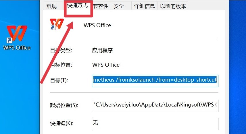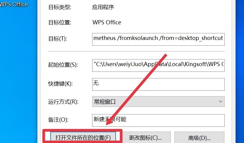 在对话框的快捷方式页面上,单击“打开文件位置”。