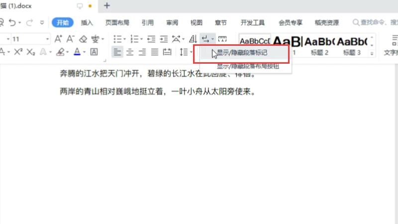 打开Word文档,单击开始选项中的“显示/隐藏编辑标记”按钮。