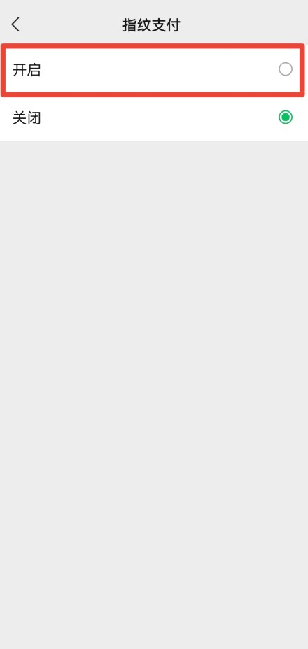 在指纹支付页面,点击“打开”按钮,验证微信支付密码。