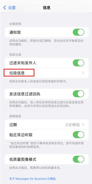 点击“垃圾短信”选项。