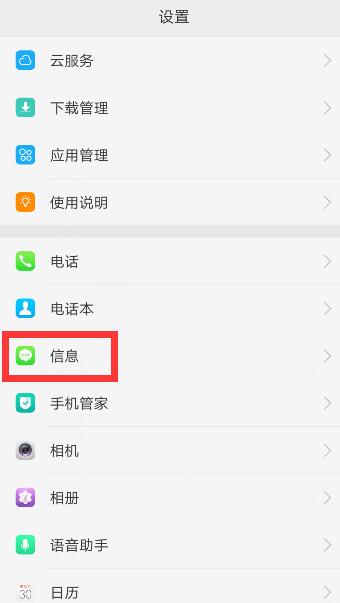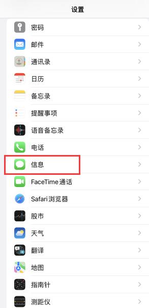 打开手机设置,点击“信息”选项。