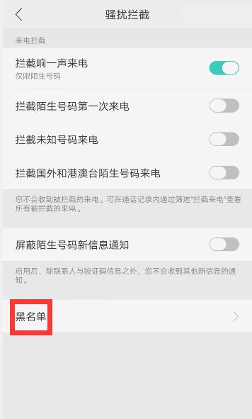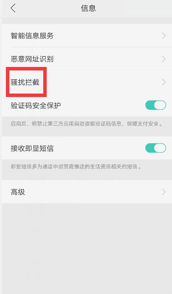 输入信息后点击“骚扰拦截”选项。