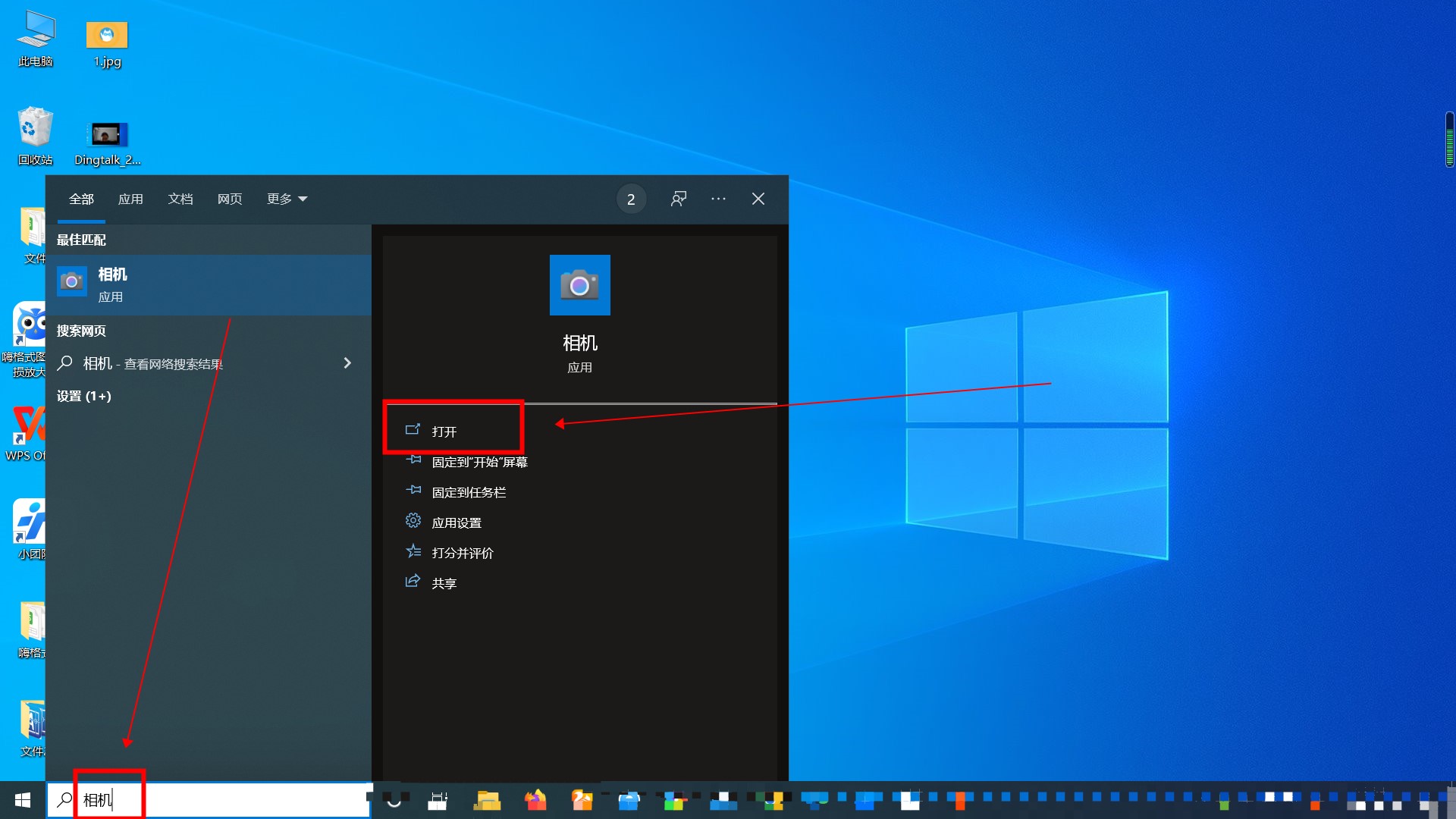 打开电脑,在搜索栏中输入相机,然后点按以打开相机应用程序。