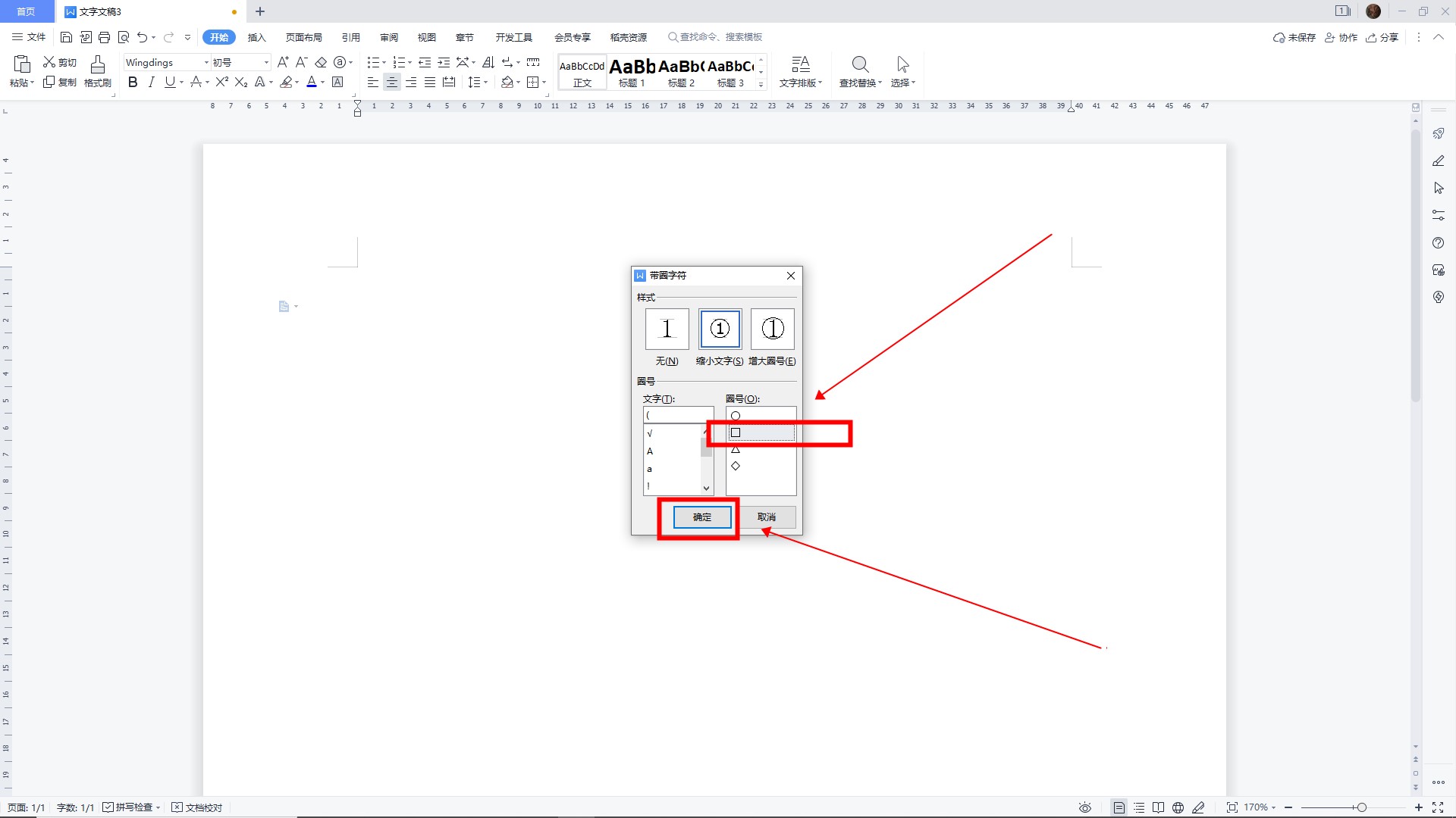 进入圆圈字符窗口,选择方框的圆圈号。