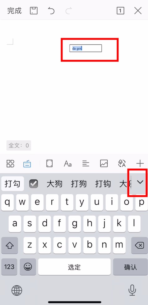 然后输入“大狗”拼音,点击右边的下拉符号。