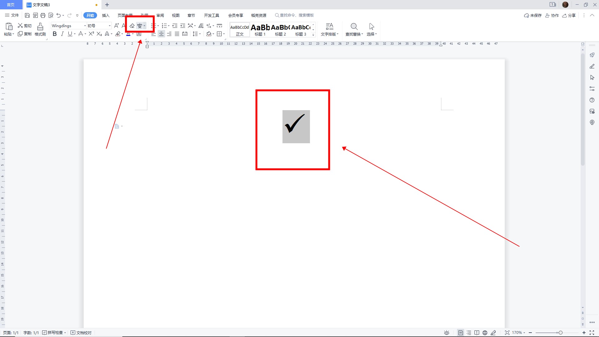 然后勾选符号,点击“开始”下的“文本”。