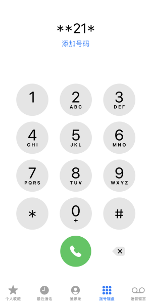 打开电话功能,在拨号盘中输入**21*。