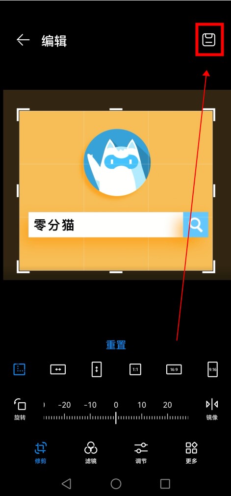 要裁剪照片,请单击右上角的保存按钮。