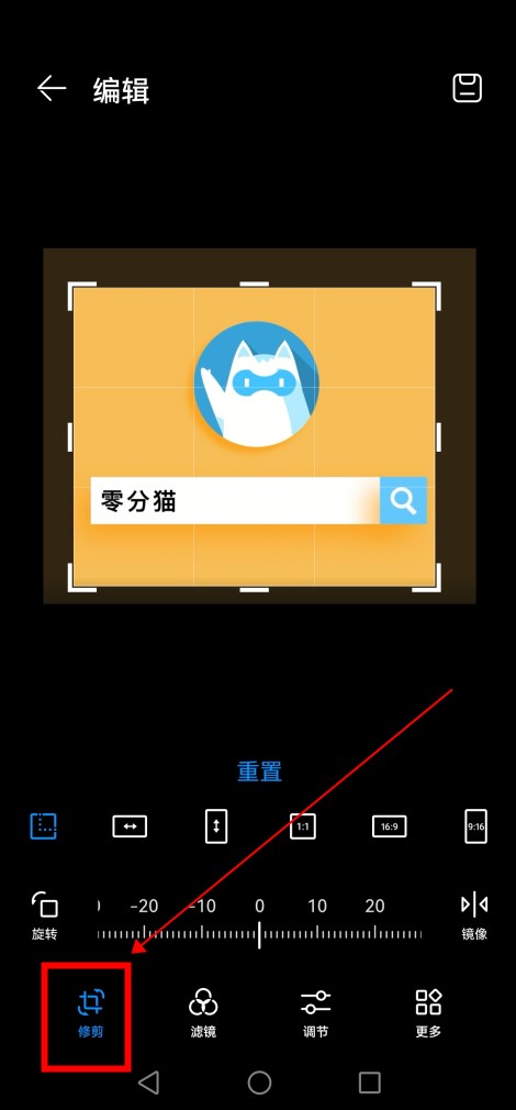 选择“修剪”以减小照片尺寸。