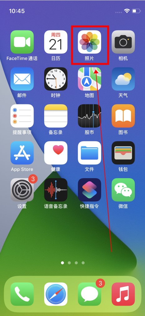 打开手机,点击桌面上的“照片”。