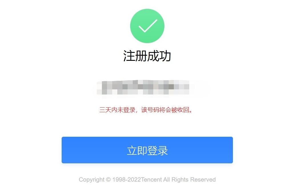 QQ号码注册成功。