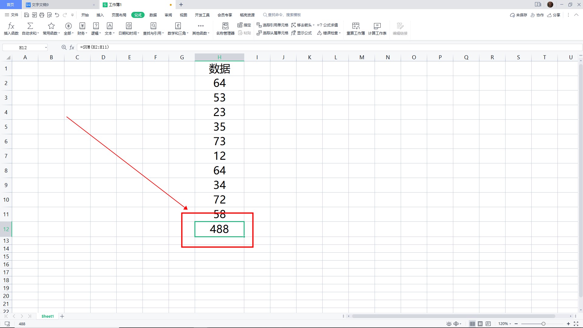 Excel可以自动求和,使用函数sum。以WPS 11.1.0.11365为例。下面是自动求和的步骤: