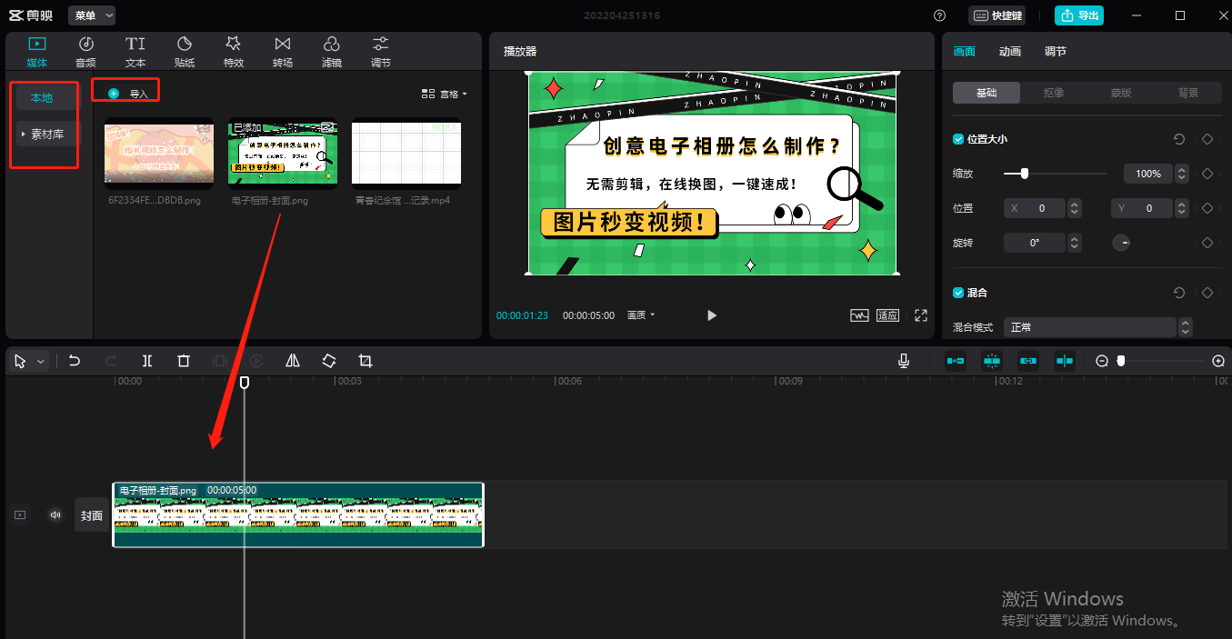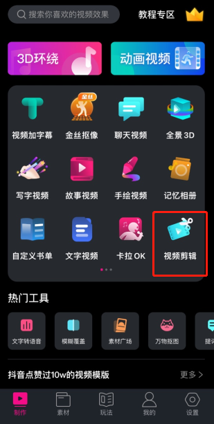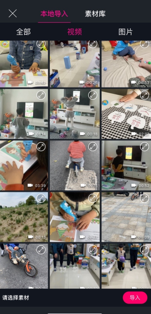 下载相册app,点击【制作界面】上的视频剪辑选项;进入视频剪辑页面,添加素材,素材可以本地导入,也可以直接从素材库中选择。