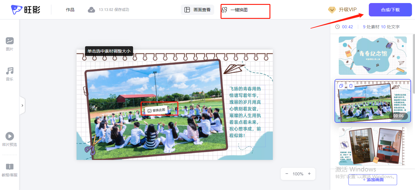 点击【合成/下载】,等待视频渲染合成。预览效果正确后,可以直接下载高清视频,直接导出。