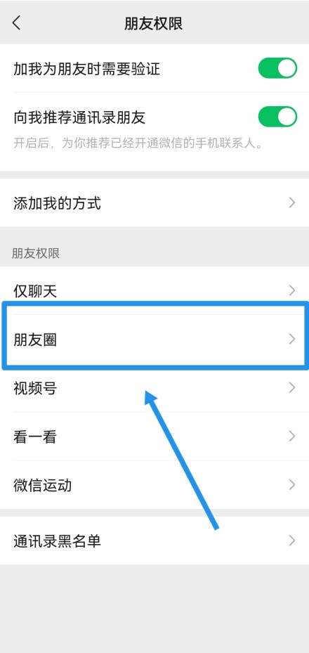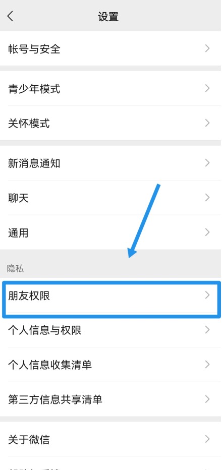 在微信设置页面,点击下方的“好友权限”即可进入。