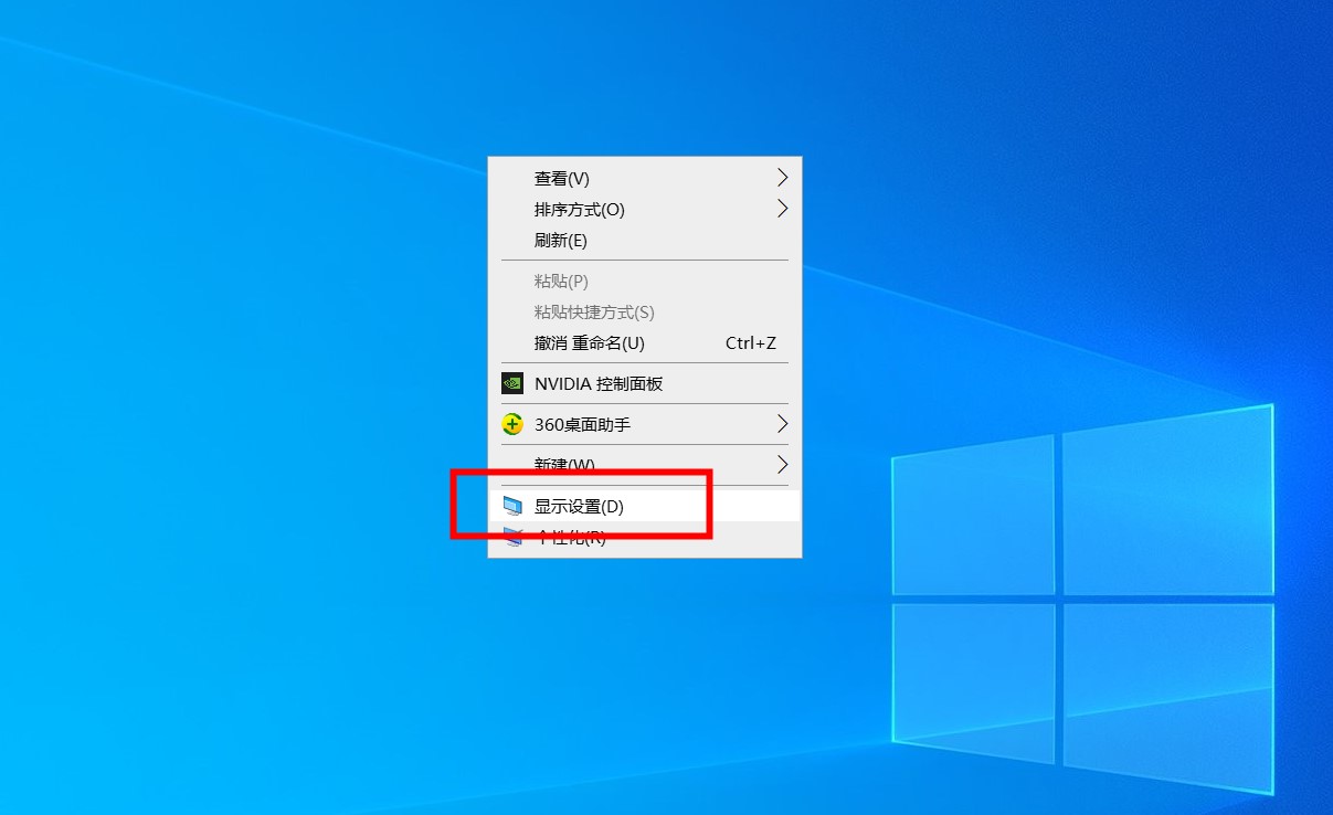 首先,将鼠标定位在电脑桌面上,右键单击“显示设置”。