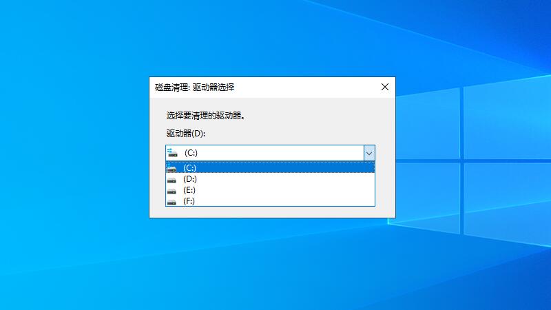 在磁盘清洗窗口中选择要清洗的分区,如驱动器(C:)。
