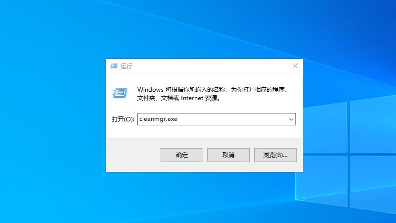 在运行窗口中输入“cleanmgr.exe”命令,然后单击确定。