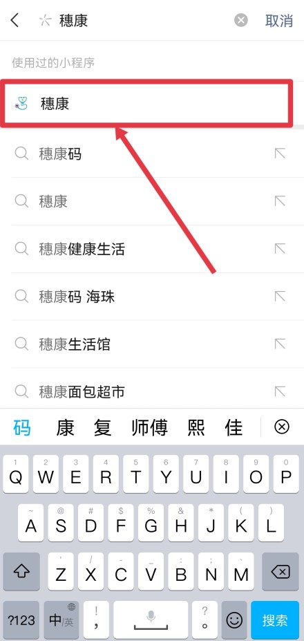 在微信小程序的搜索栏,输入“穗康”,点击进入。