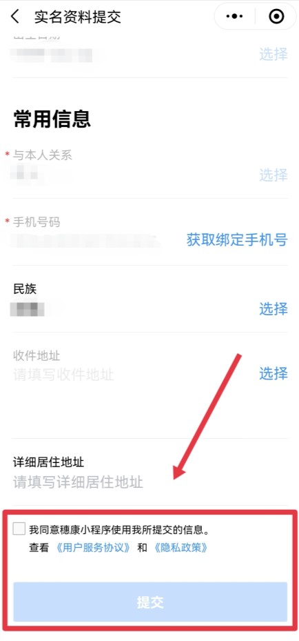 提交认证信息后,在弹出的我的健康信息中填写并提交。