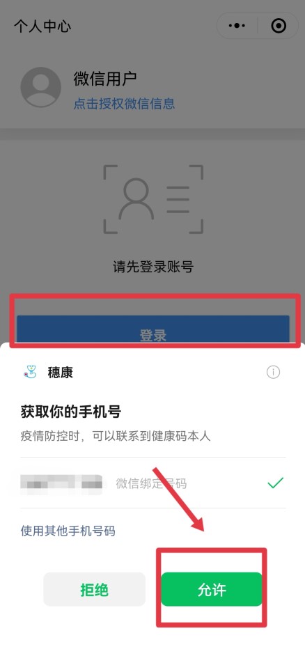 进入我的页面,登录微信账号,点击右下方的“允许”。