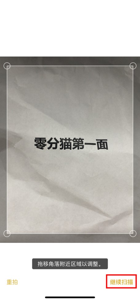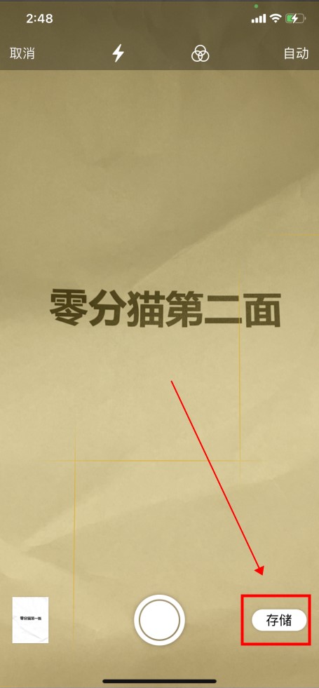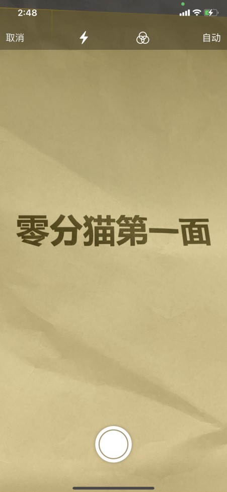 将纸质文件内容放入相机框中,然后单击中间的拍摄按钮。