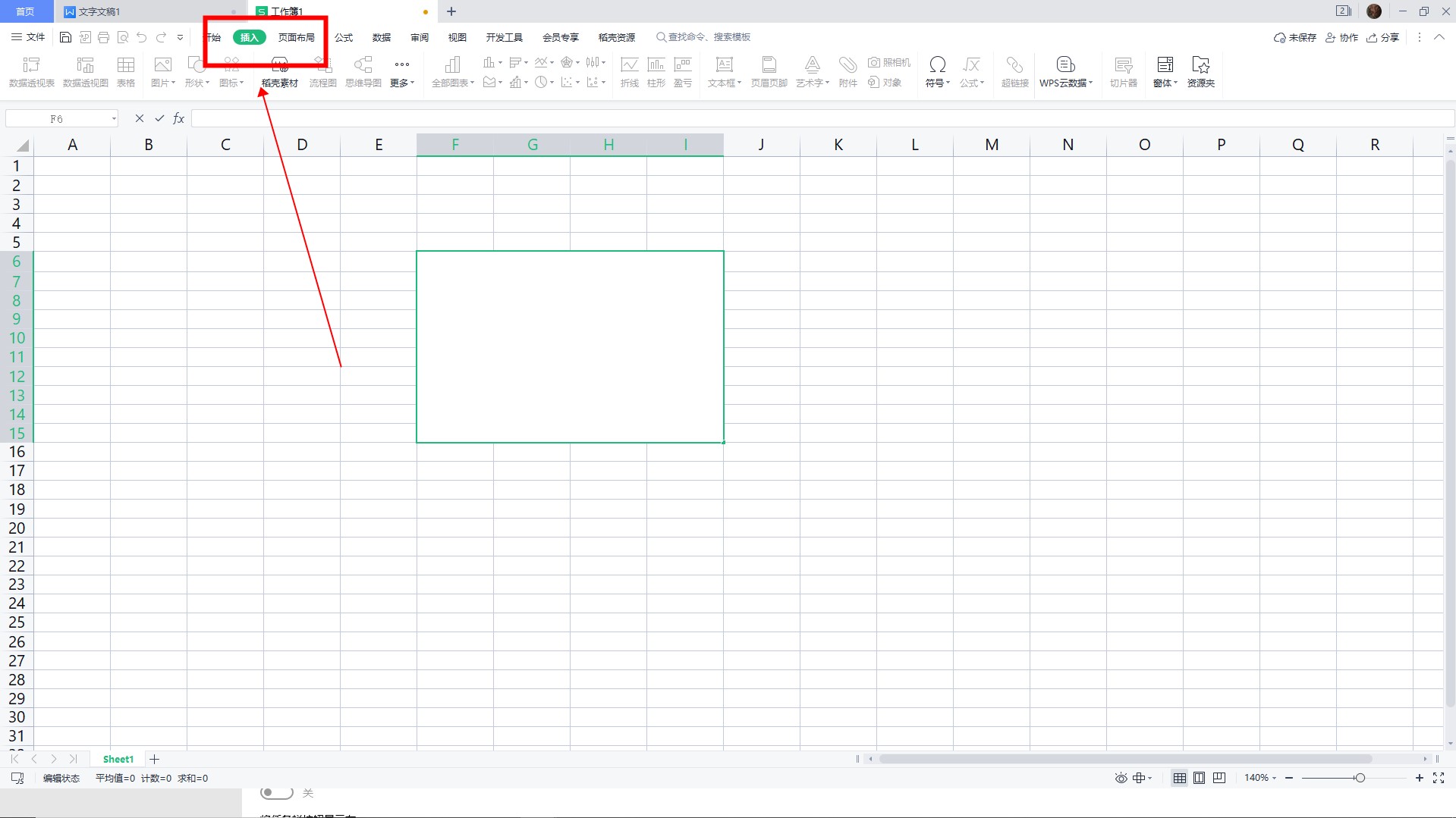 打开Excel并单击插入。