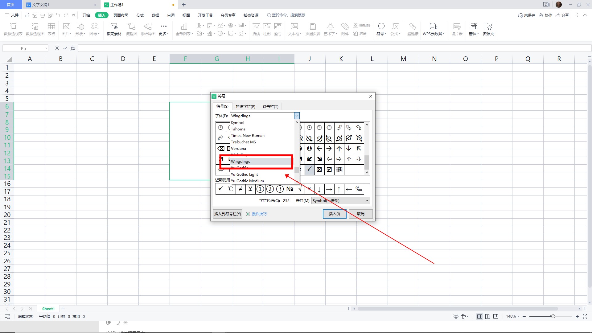 选择Wingdings字体