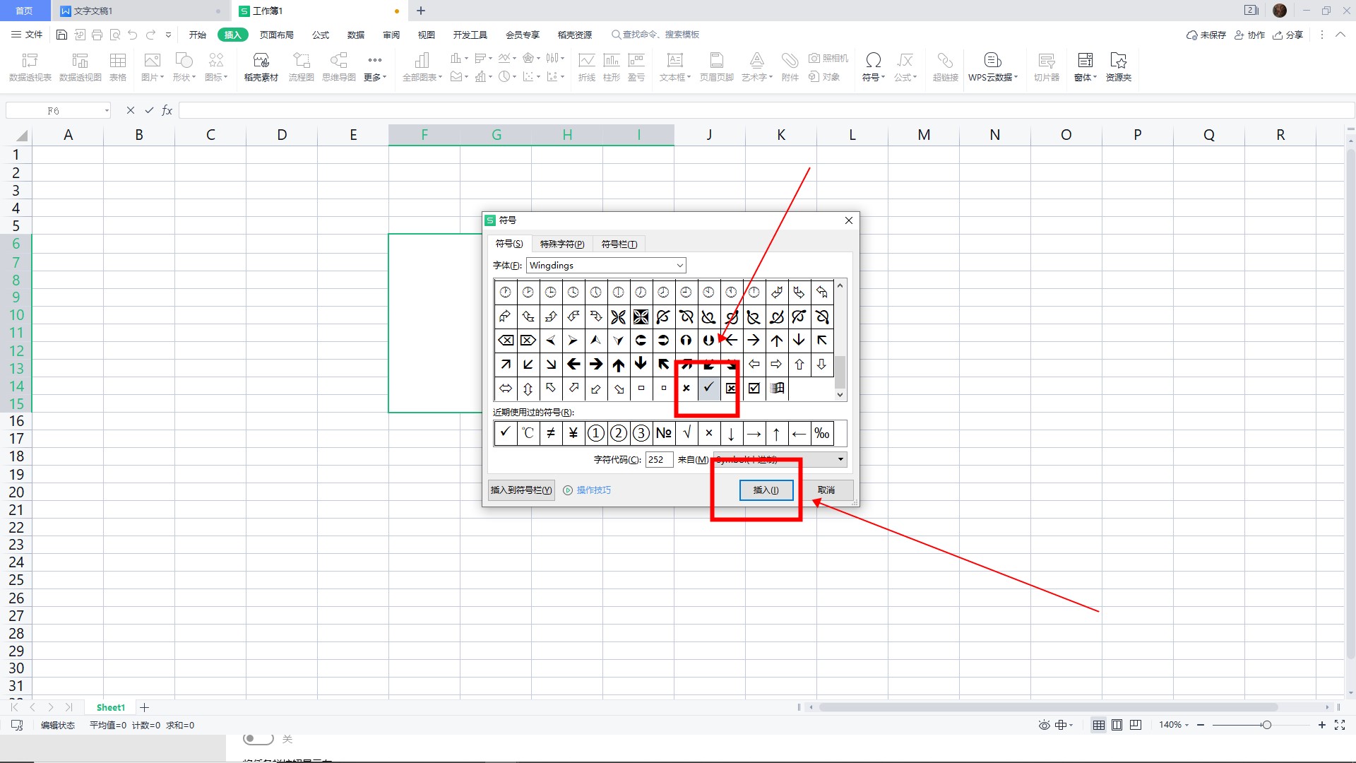 选中勾号,然后单击插入。
