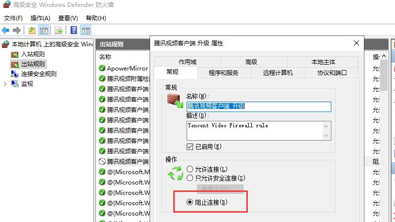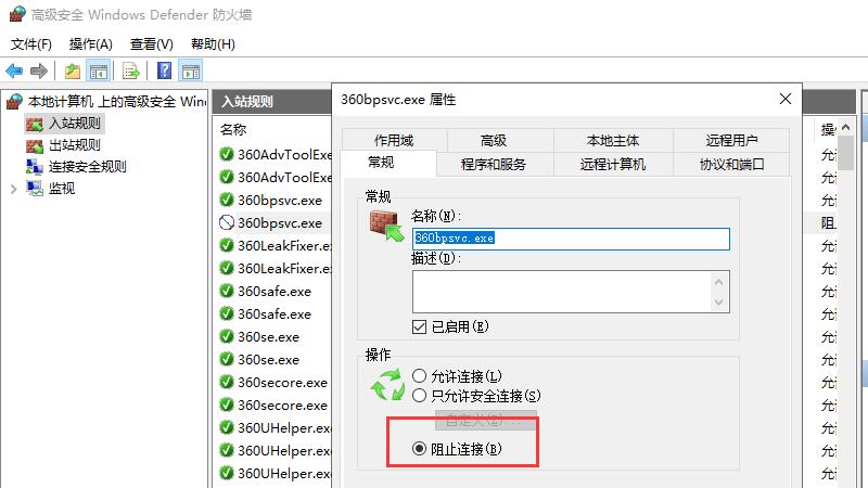 在弹出的属性窗口中单击“阻止链接”以阻止其联网。