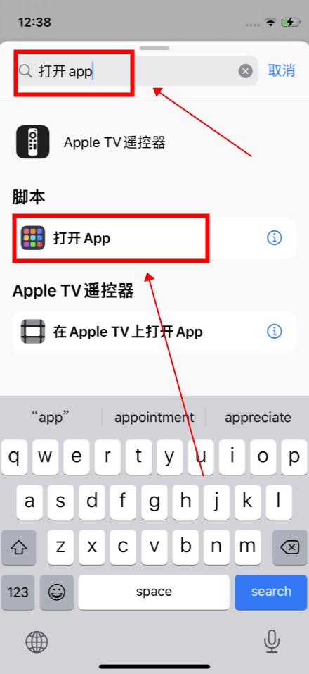 搜索“打开应用”,点击脚本“打开应用”。