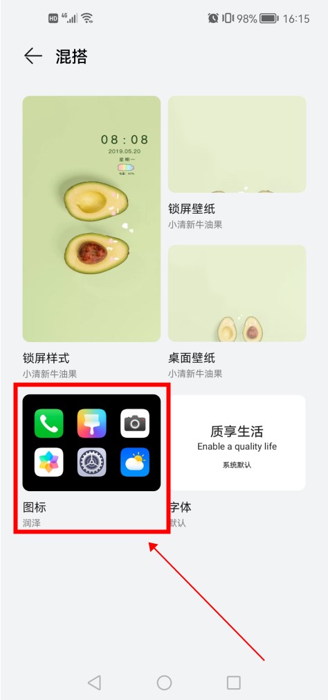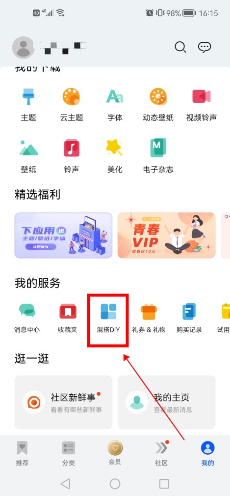 -   进入主题点击混搭DIY 进入手机主题,点击“我的”中的“混搭DIY”。