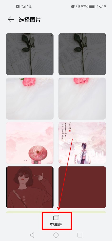 -   点击本地图库 接着选择图片,点击“本地图库”。