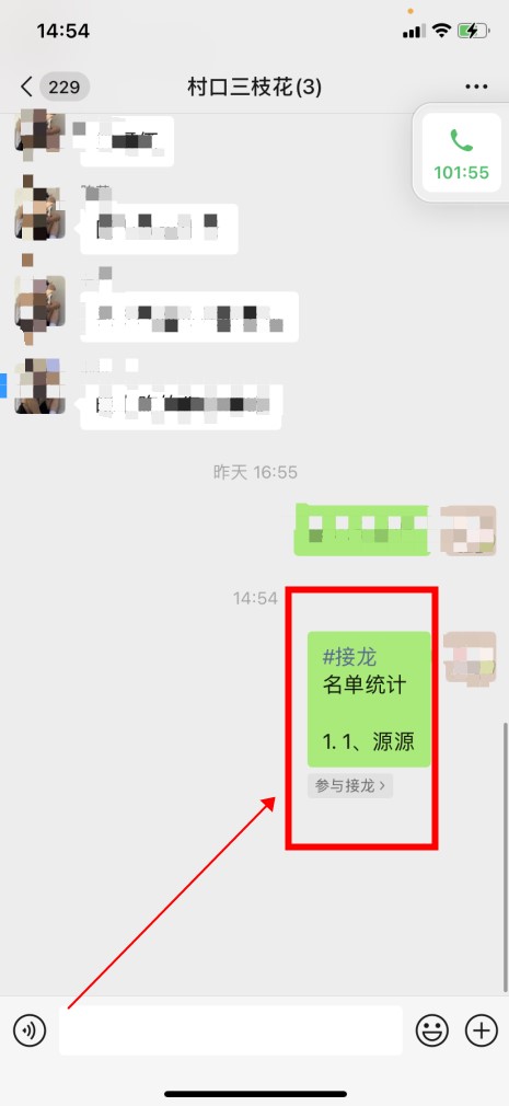 接龙表单发送到微信群聊,所有群成员都能看到并参与接龙。