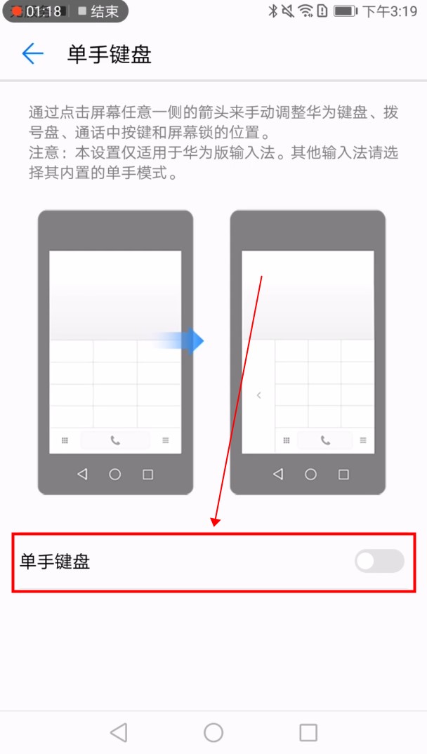 以华为手机键盘为例。打字键盘变小,可能是误开了单手键盘模式。可以直接关闭单手键盘模式或者直接拖拽放大。以下是关闭单手键盘模式的步骤: