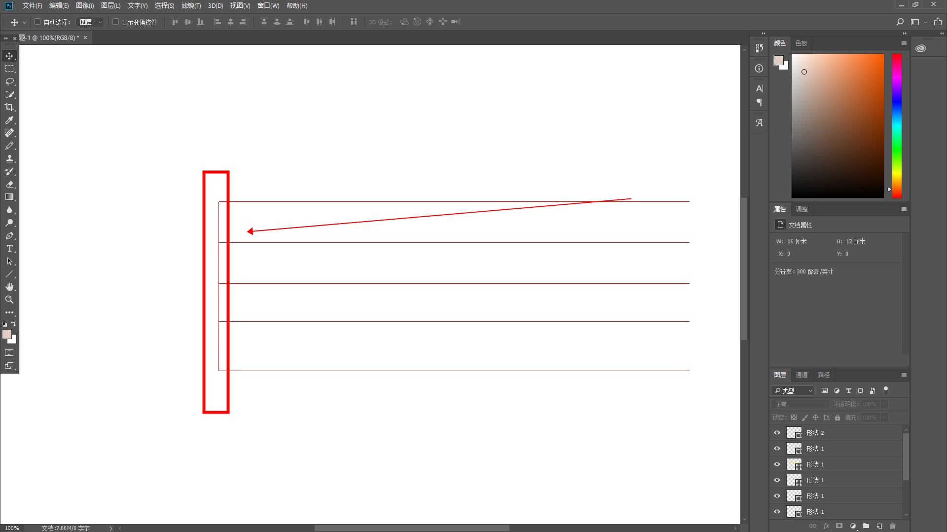在画布中复制并粘贴多条相同的垂直线,并将它们调整到适当的位置。
