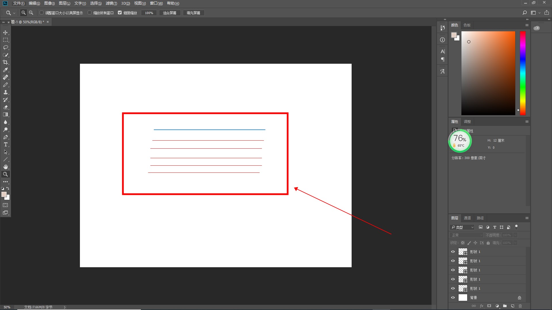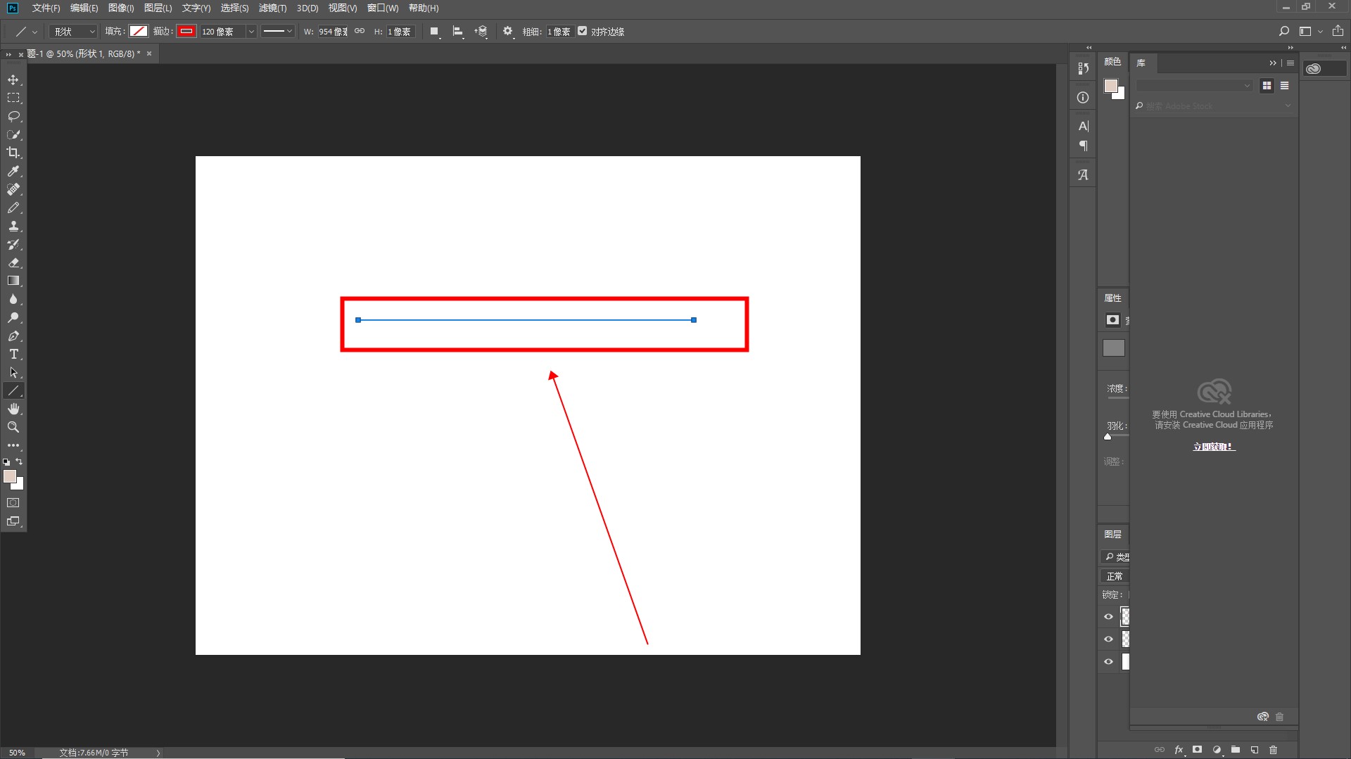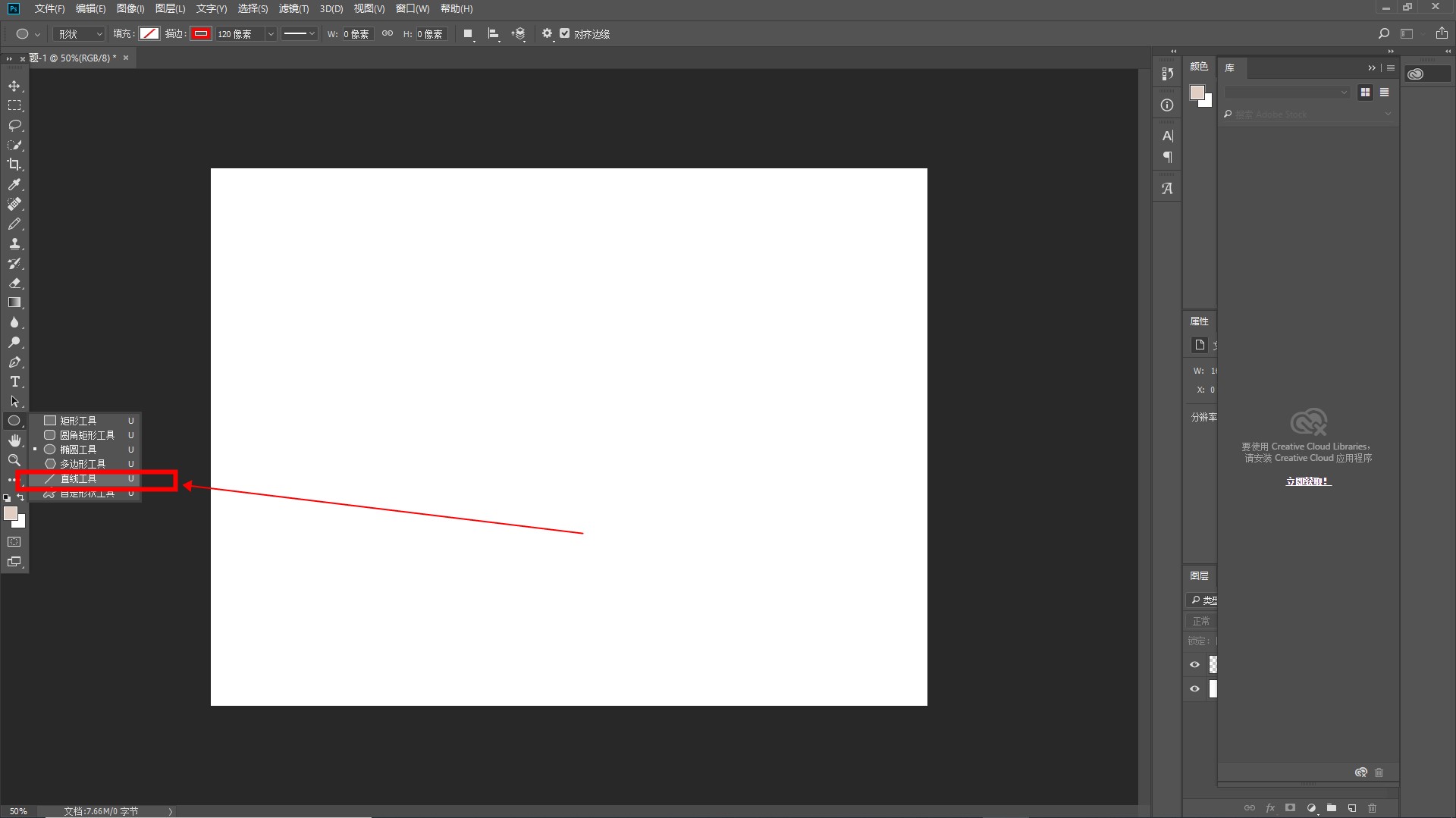 对于新创建的层1,点击选择左侧的“线条工具”。