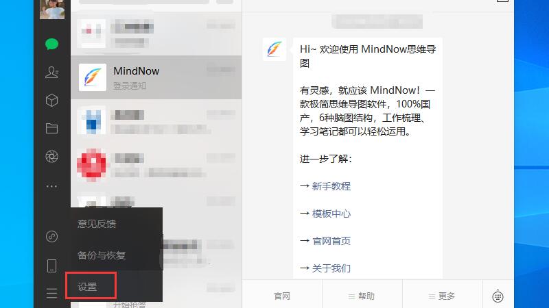 打开电脑版微信,点击左下角三个栏中的“设置”选项。
