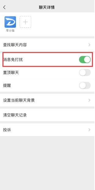 进入聊天详情界面后,滑动打开“消息勿扰”。