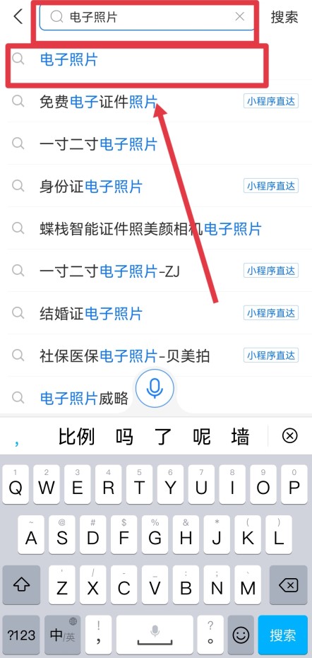 在搜索框中输入电子照片,点击进入“电子照片”选项。