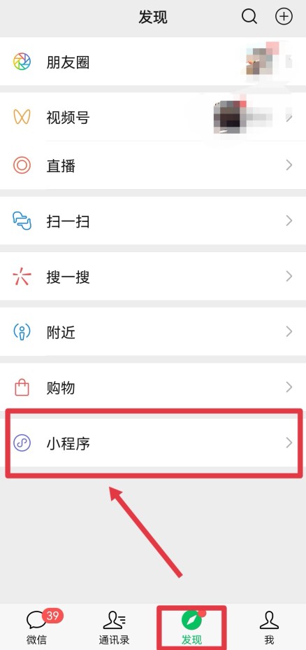 打开微信的发现页面,点击进入下面的“小程序”。
