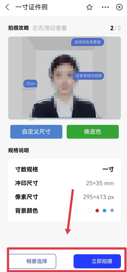 在页面上,根据自己的需求,点击“相册选择”或“立即拍摄”。