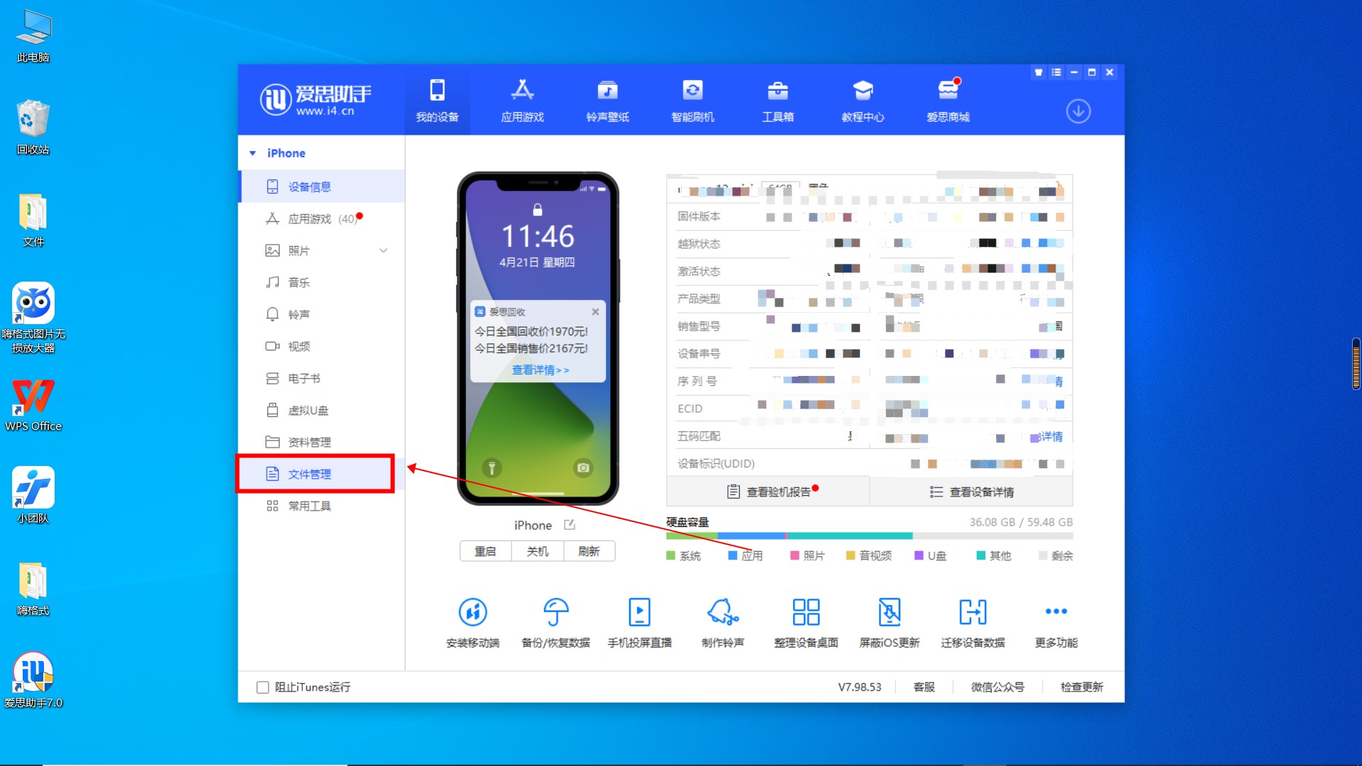 单击软件中的文件管理。