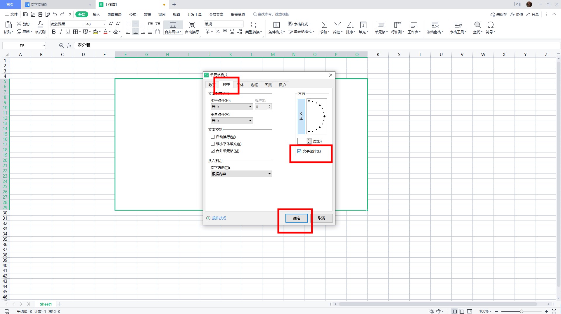 在单元格格式中,单击对齐选项卡,选中“垂直文本”,然后单击确定。