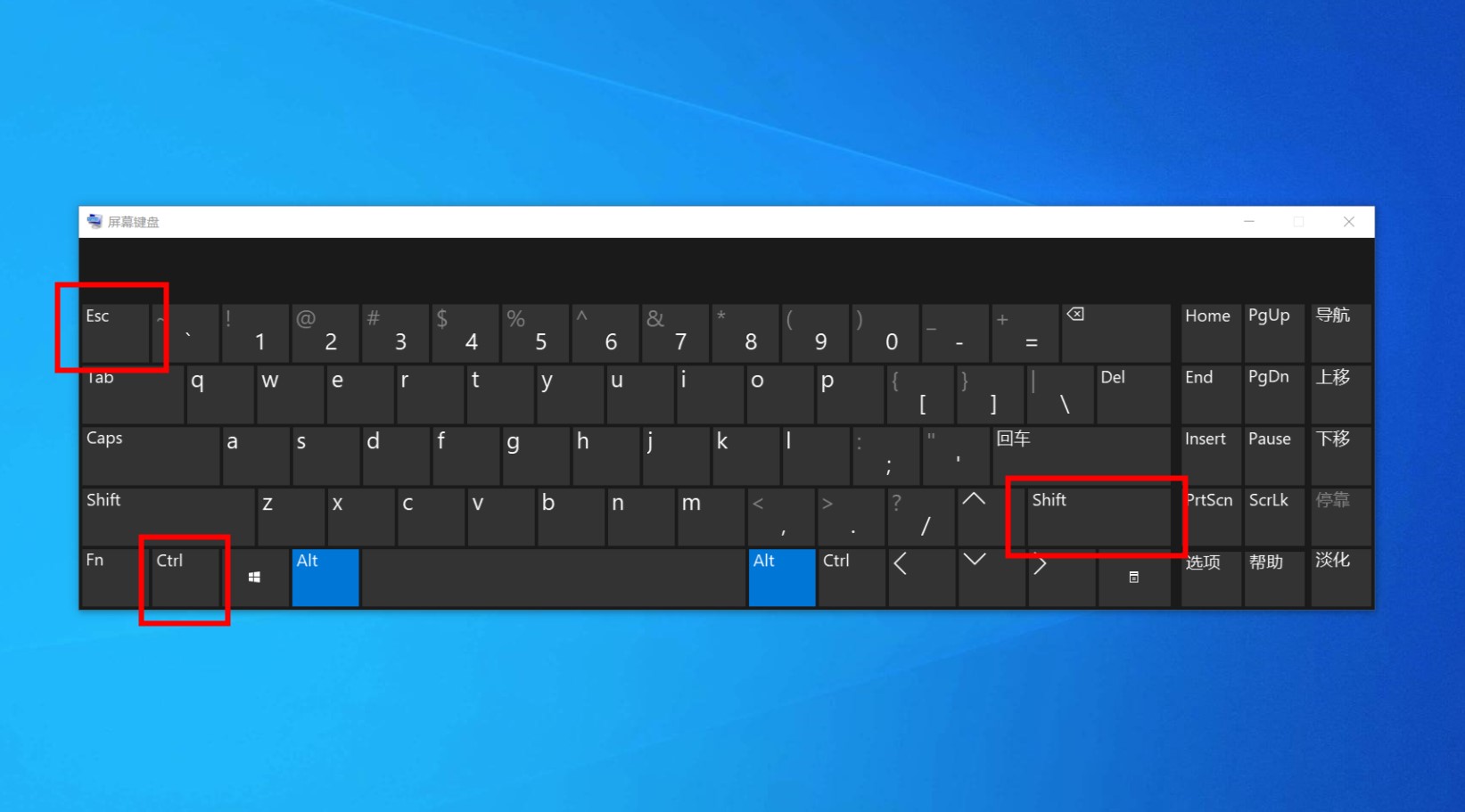 您也可以按键盘上的“Ctrl Shift ESC”键来重新启动计算机。