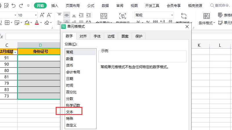 在弹出窗口中,选择类别作为“文本”选项并确认。