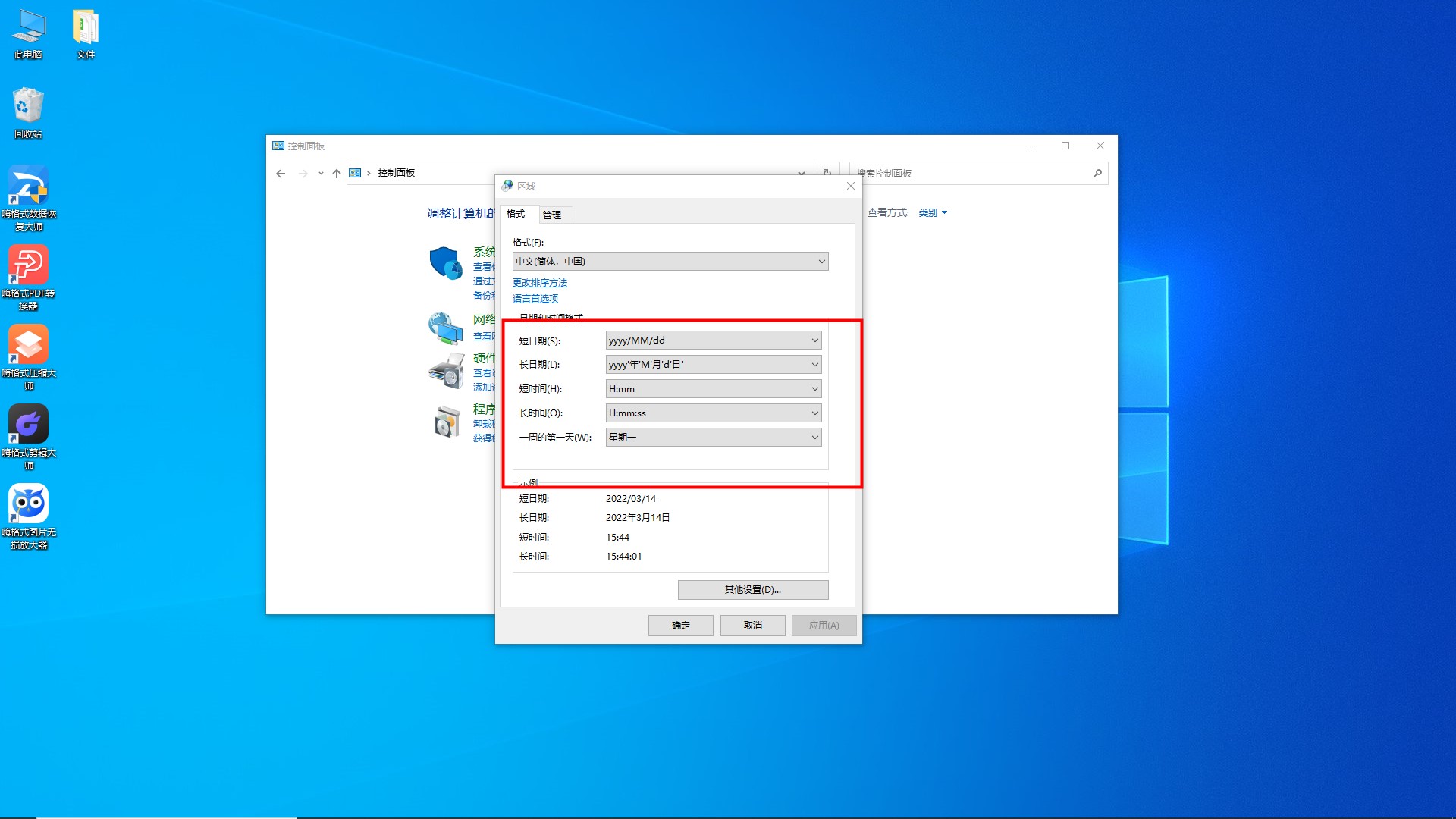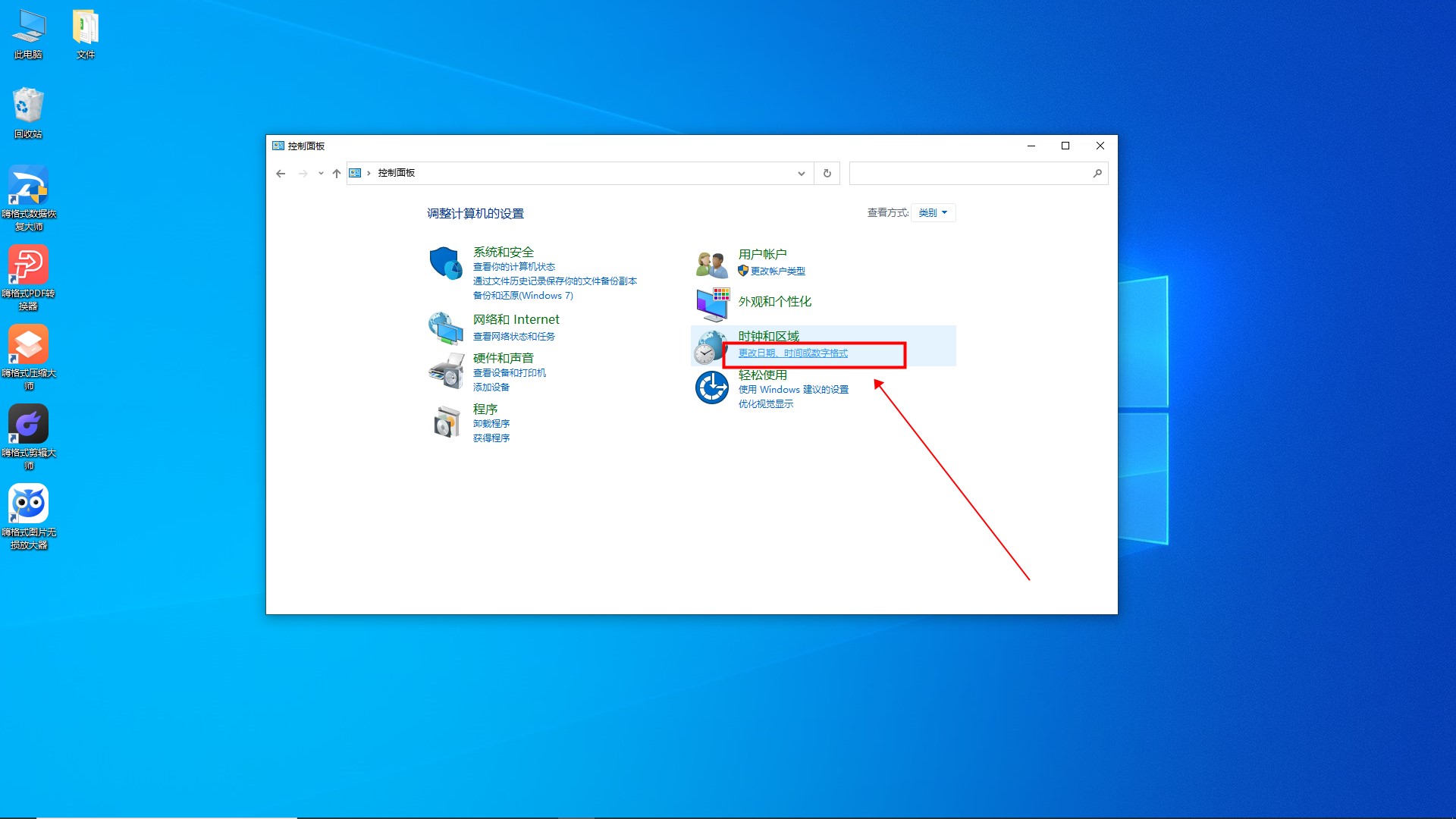 打开电脑控制面板,点击“更改日期、时间或数字格式”。